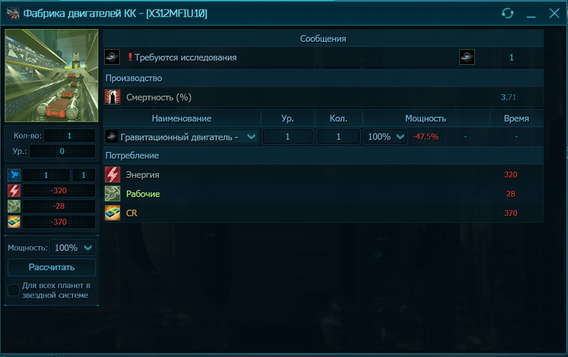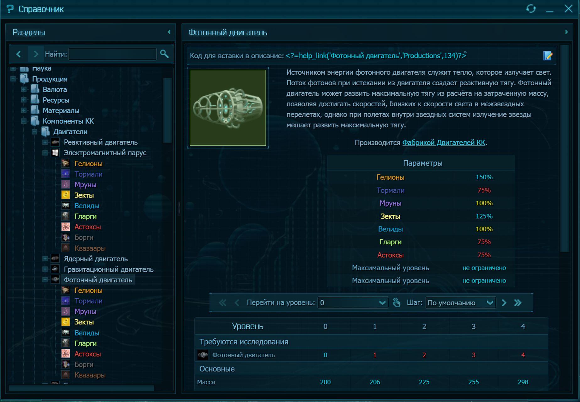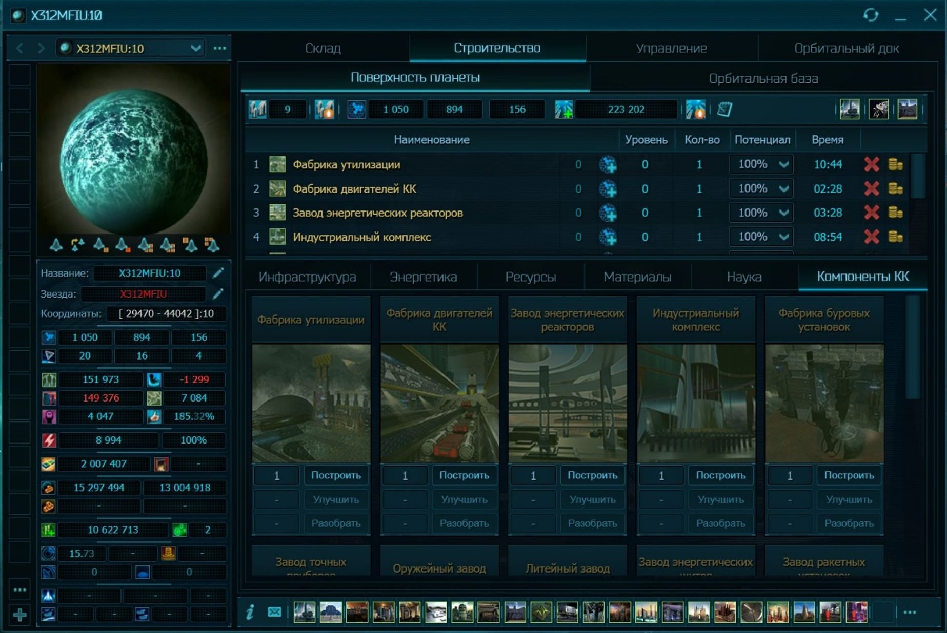 Производятся модули на заводах комплектующих, при том каждый может произвести лишь модули своей расы, большая часть из которых имеют далеко не лучшие показатели. Выход – кооперация с другими игроками, покупка или заказ модулей у представителей рас, имеющих бонус при их производстве. Словом, если вы играете гларгами, то при постройке простого транспорта вашим собственным будет только реактор и гравитационный вычислитель для прыжка в другую галактику. Вам придется заказывать двигатели у гелионов и отсеки у тормалей, если конечно не хотите получить заведомо медленный и маловместительный корабль.