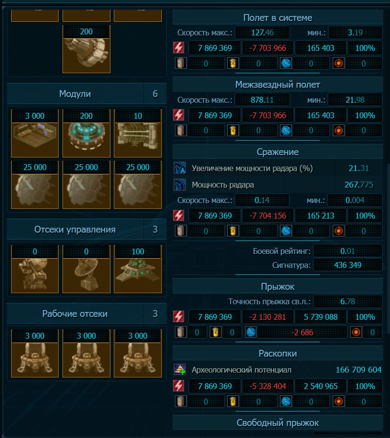 Что же это за возможности?! Одинаковыми для всех рас являются только типы корпусов с количеством слотов под модули, но сами модули различны, как и характеристики корпусов (вместимость, живучесть и т. д.). Всего компонентов более 50-ти – двигатели, реакторы, добывающие модули, сканеры, радары, устройства маскировки и мн. др. наименований и, конечно же, оружие и защита. При этом можно спроектировать корабль с модулем любой расы любого уровня, в т. ч. и боргов. И здесь не действует принцип – чем выше уровень, тем лучше. Если вам нужно вписаться в определенный объём, вместимость, достичь определенной скорости, то малоуровневый модуль бывает более ценен в ЗФ, чем самый высокий.
